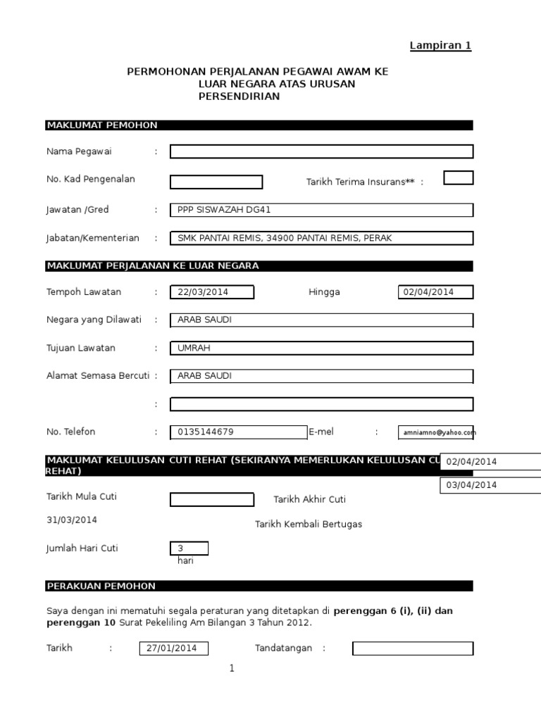 Pdf Borang Permohonan Perjalanan Pegawai Awam Ke Luar Negara Atas Urusan Persendirian Apple Blossom92 Academia Edu